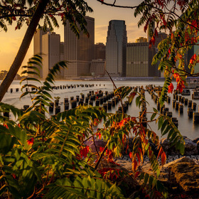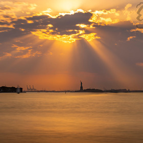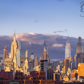 louds, evening glow, calm w … as the evening light r...kyline glows in gol