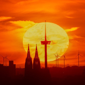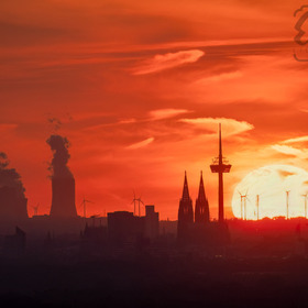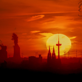 cologne skyline, su...unset, fiery sky, ge … the cologne skyline glo...st the fiery sky. a